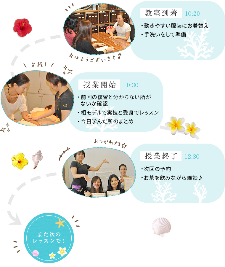 ロミロミの基礎から具体的な施術方法を中心に、皆様にお伝えしていきたいと思っております。